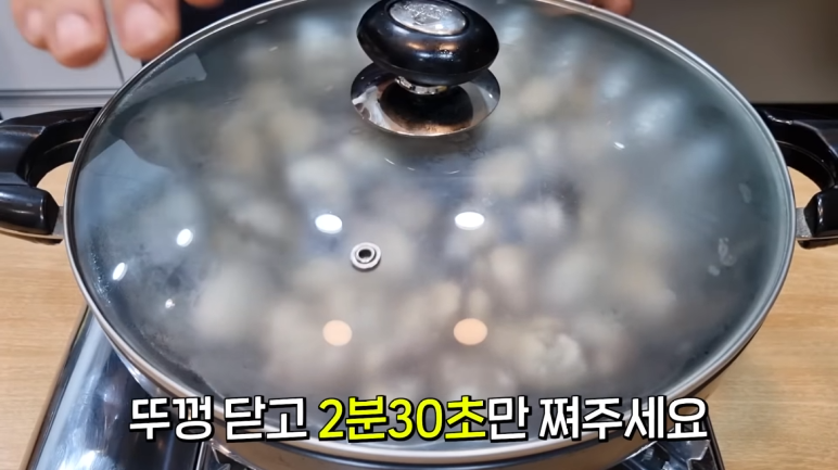6. 뚜껑을 닫고 2분 30초만 쪄줍니다.