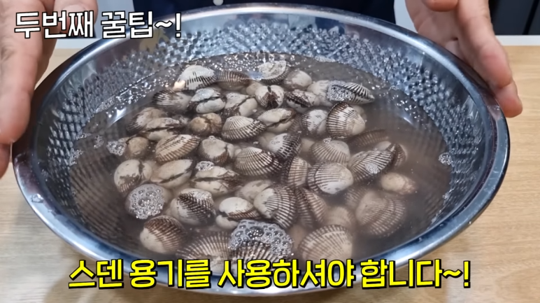 해감 물 1리터, 소금 30g(3스푼), 검정비닐(환경 맞추기), 스테인리스 그릇(화학작용을 일으켜 해감이 빠릅니다)