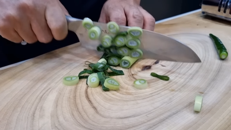 6. 대파 1/2대, 청양고추 1개를 썰어줍니다.