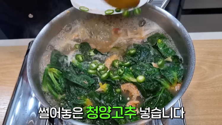 9. 다진 마늘 1/2스푼, 청양고추, 집간장 1스푼, 썰어놓은 대파를 넣어줍니다.
