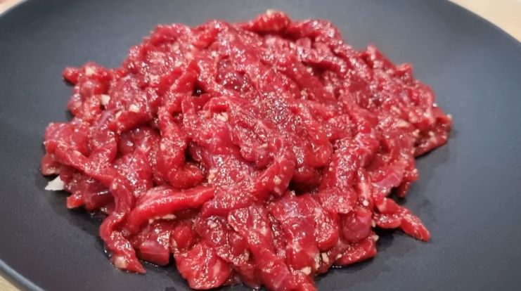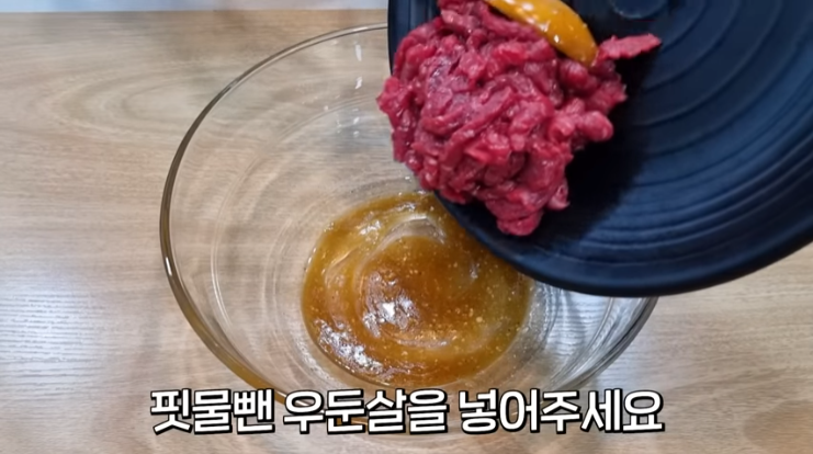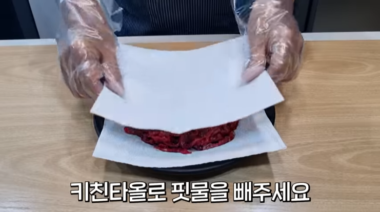 1. 우둔살 250g을 우선 키친타올로 핏물을 제거해 줍니다.