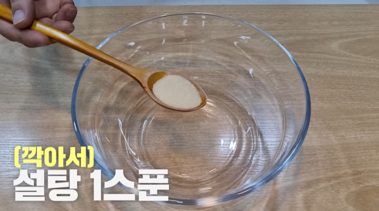 설탕 1스푼, 다진 마늘 1/2스푼, 소금 1/3스푼, MSG(미원) 1꼬집, 진간장 1/2스푼, 참기름 2스푼, 후추 2꼬집, 통깨 적당량