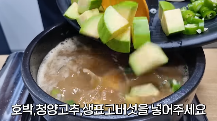8. 호박, 청양고추, 생표고버섯을 넣어줍니다.