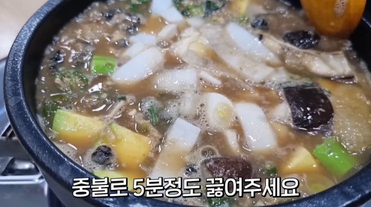 7. 1분 정도 볶아주다가 육수를 부어줍니다.