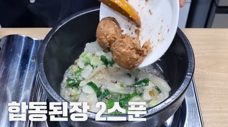 된장을 볶아서 끓이면 구수하고 짜지 않습니다.
