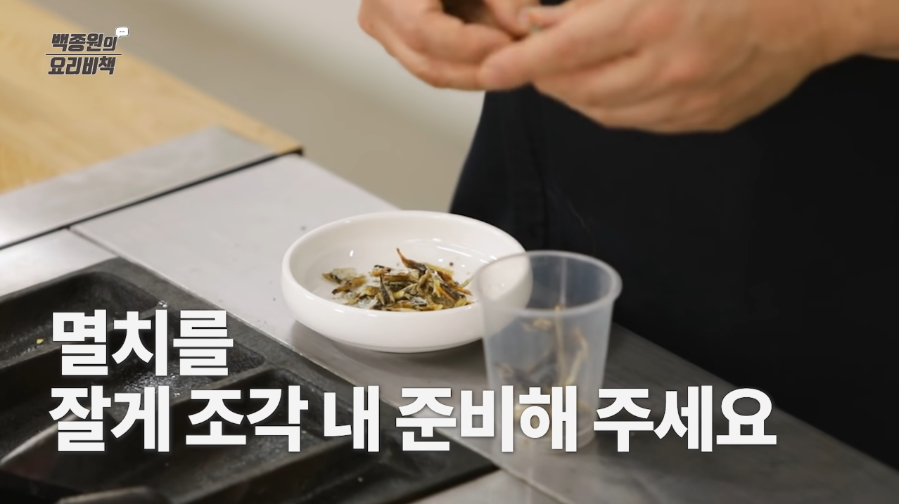 국멸치의 머리, 가시, 내장을 제거하고 손으로 잘게 찢는다.