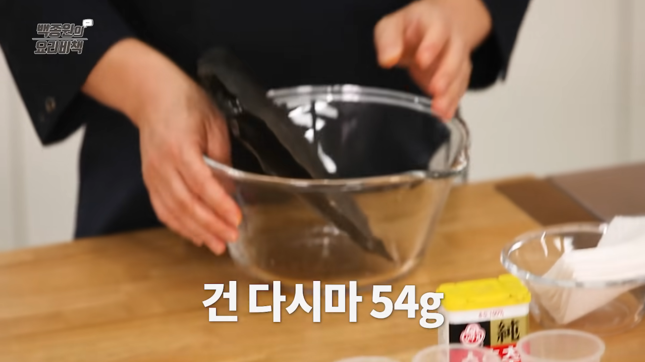 믹싱볼에 건 다시마와 따뜻한 물을 넣고 약 5~10분간 불린다.