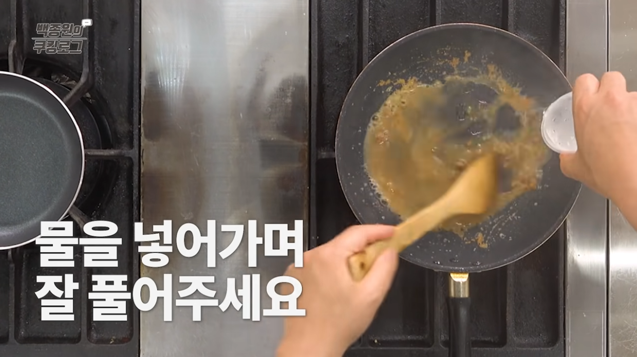 색이 나면 물을 넣어가면서 루를 풀어준다.