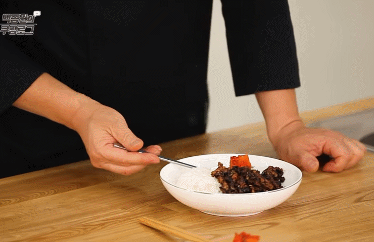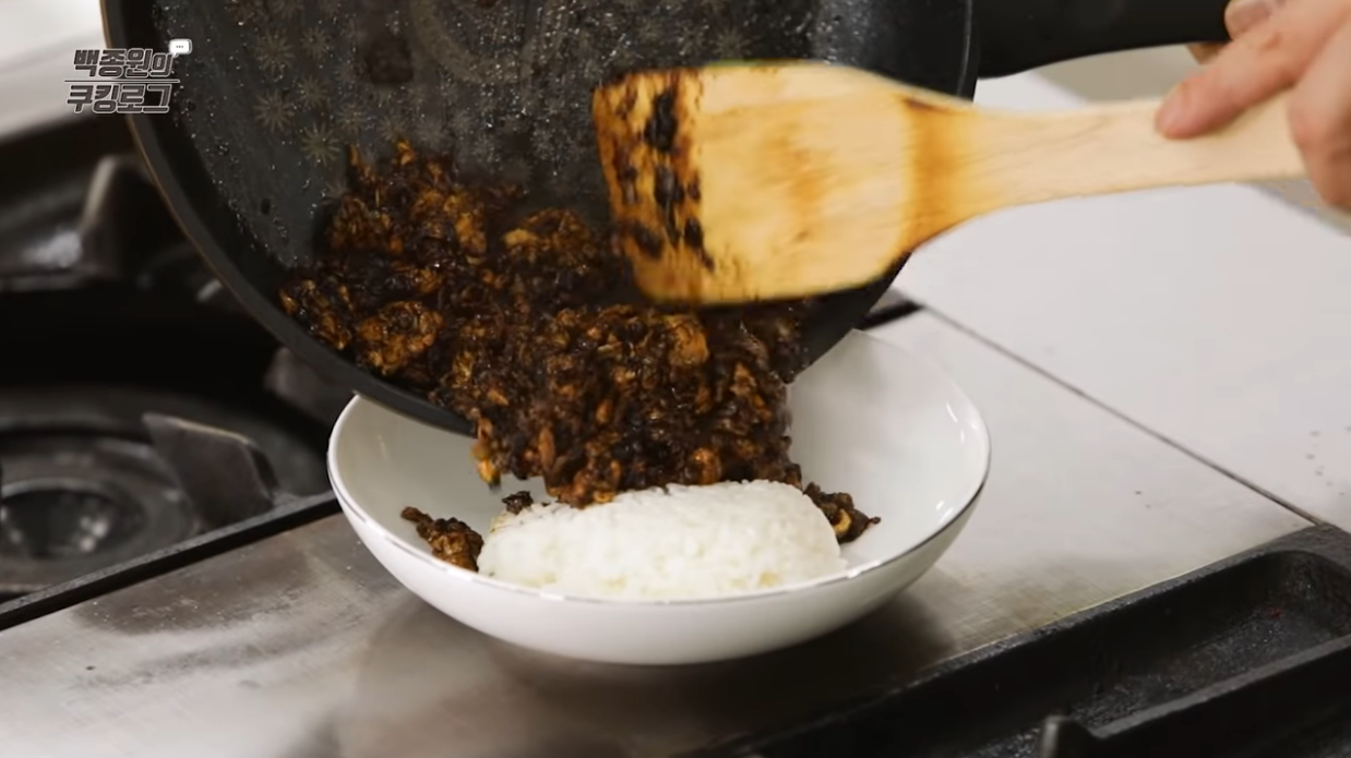 짜장 덮밥에 달걀 후라이 하나 올리면 끝! 이거 완전 밥도둑입니다!