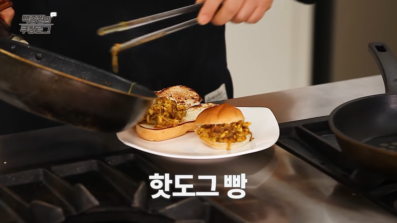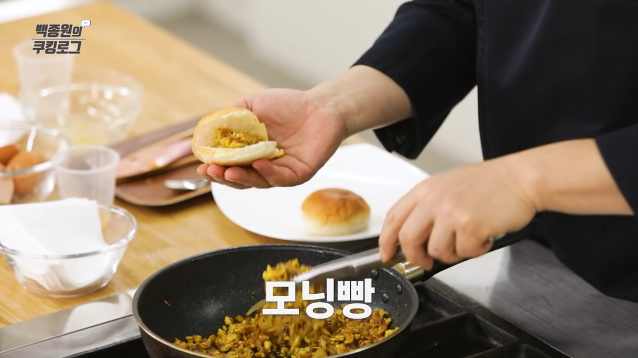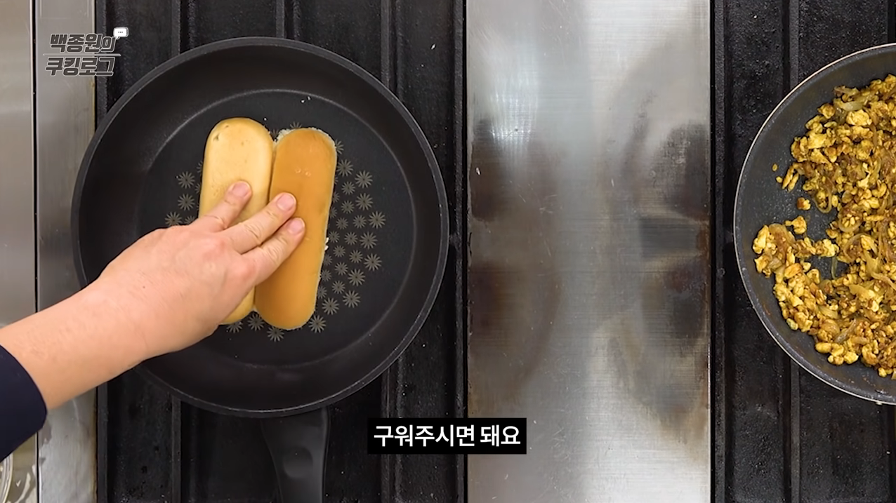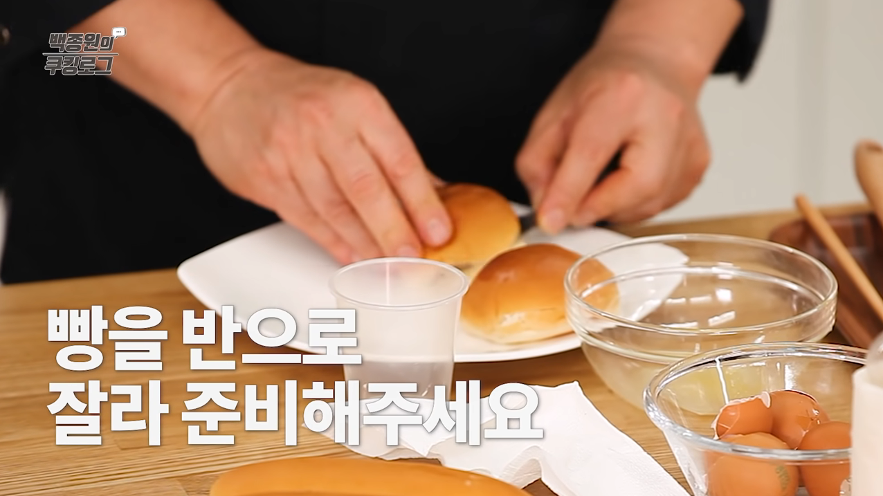 빵은 전자레인지에 10초 정도 돌리거나 프라이팬에 구워 준비한다.