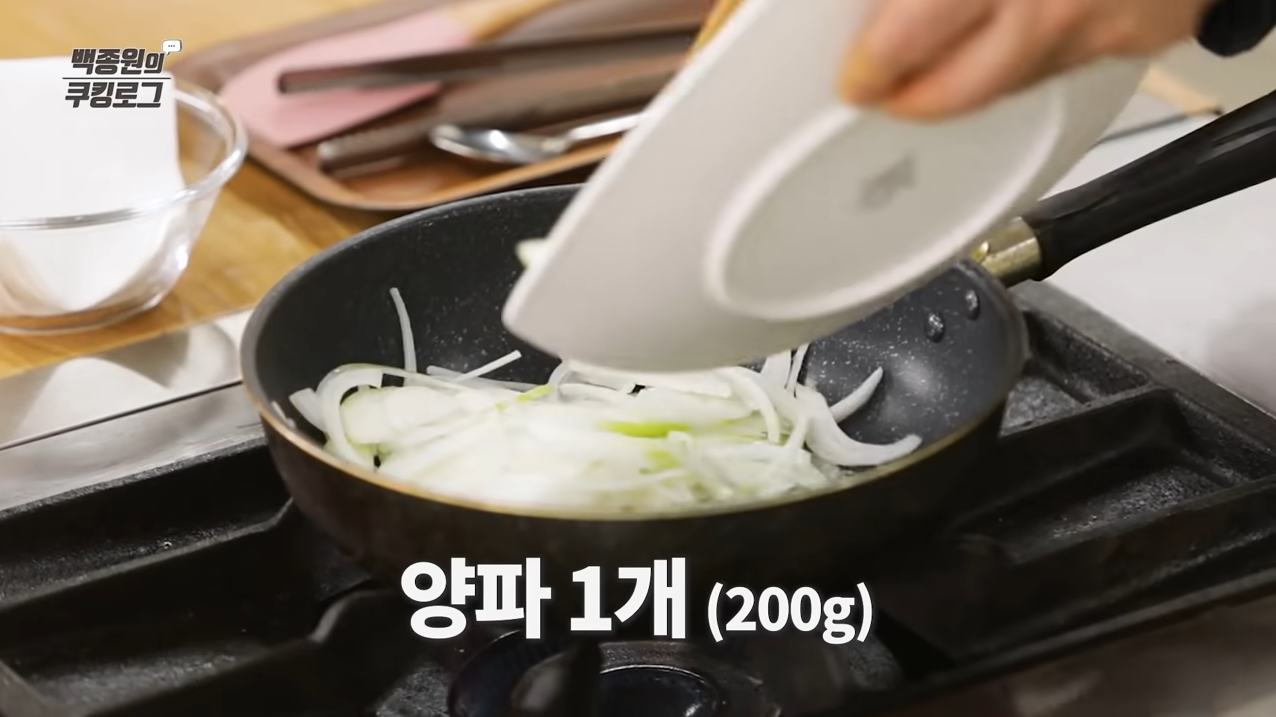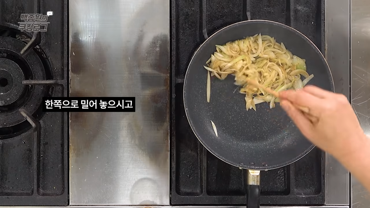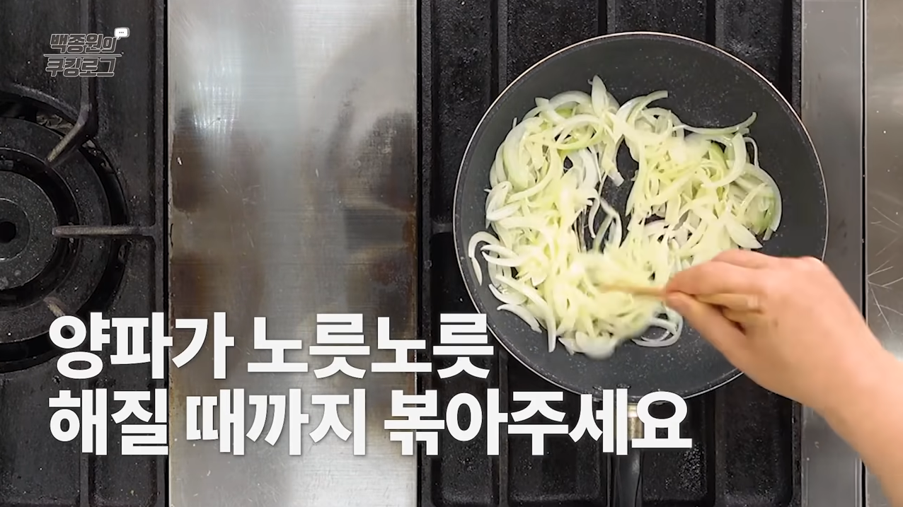 팬에 버터를 넣고 중불에 양파를 넣어 캐러멜화한다.