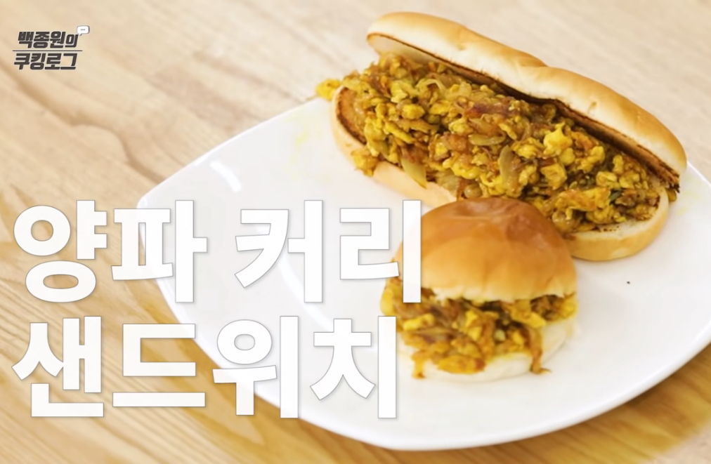 볶은 양파를 활용한 맛있는 양파커리샌드위치 입니다.