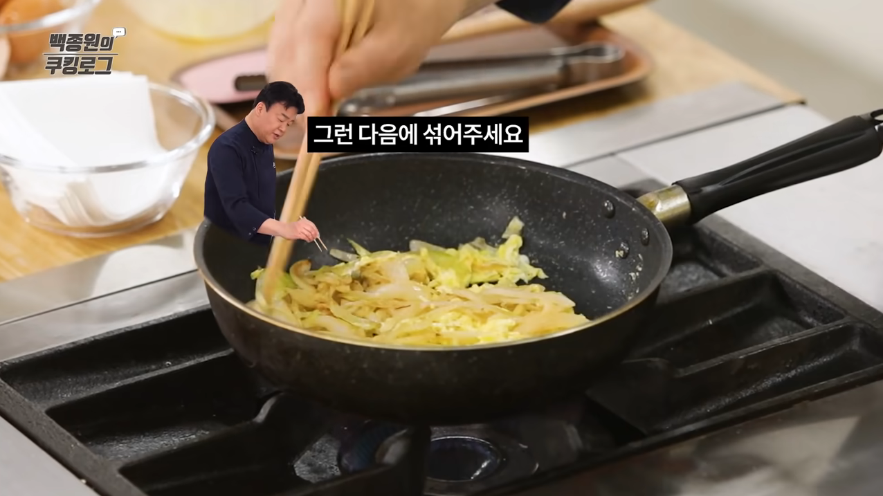 (기호에 맞게 양배추 채를 넣어 먹는다.)