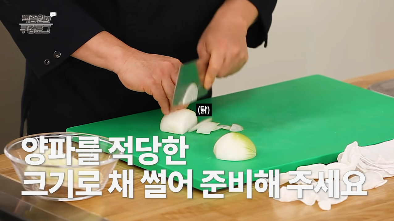 양파, 양배추는 가늘게 채 썰어 준비한다.