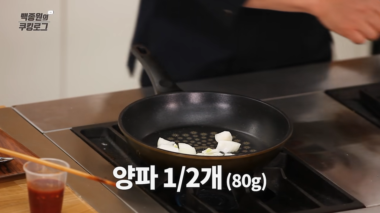 마늘이 익기 시작하면 양파, 후춧가루를 넣어 함께 볶는다.
