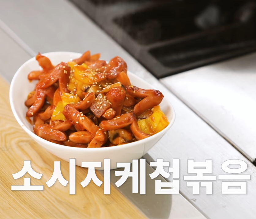 밥반찬으로도 술안주로도 훌륭한 소시지케첩볶음입니다.