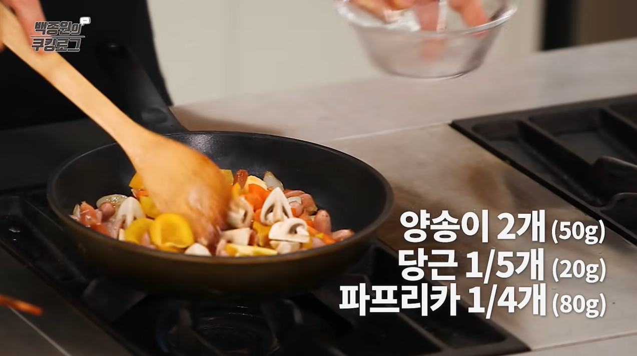 파프리카, 양송이, 당근을 넣어 볶아준다.