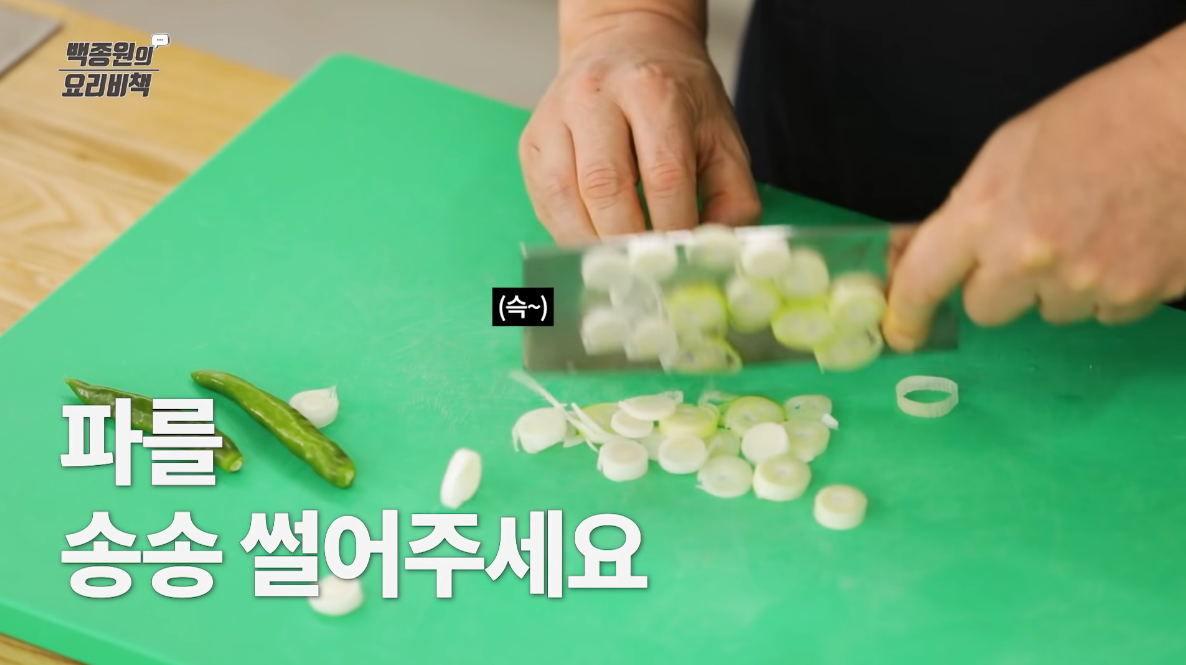 대파는 두께 0.5cm로 송송썬다.