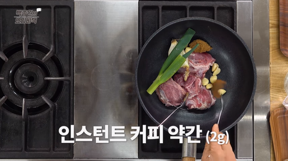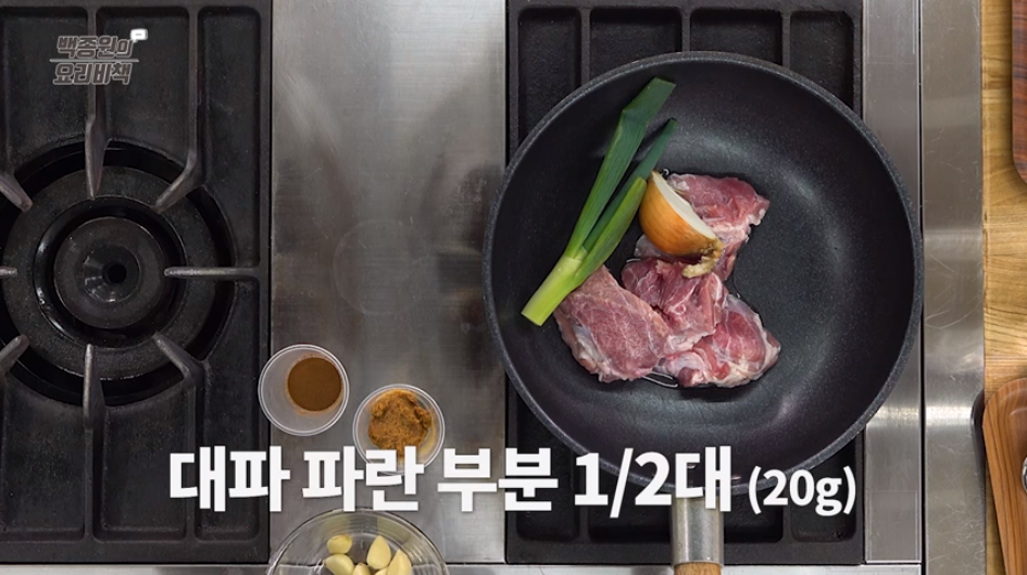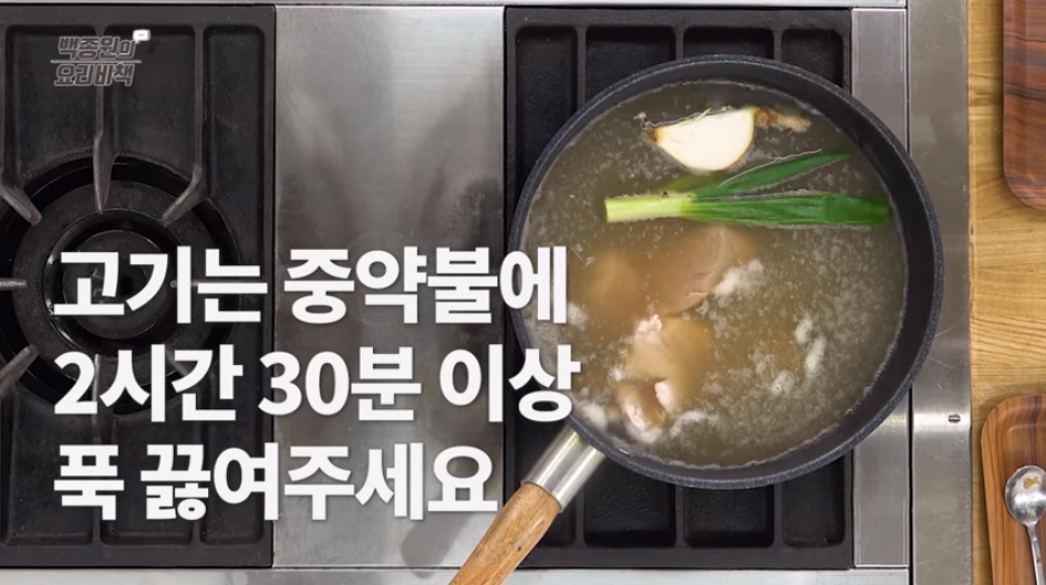 양파는 껍질 있는 채로, 대파를 넣는다.