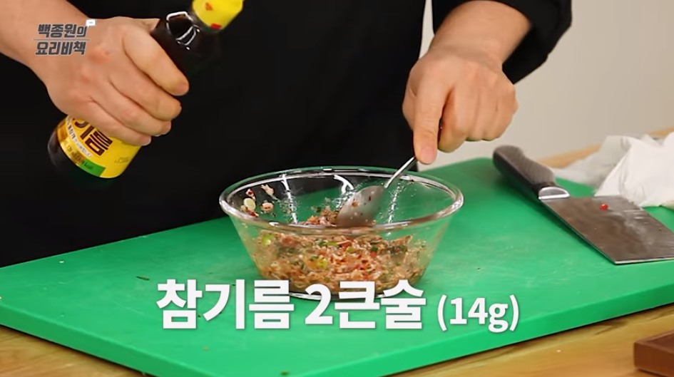 참기름, 기호에 맞게 MSG를 넣고 잘 썩어준다.