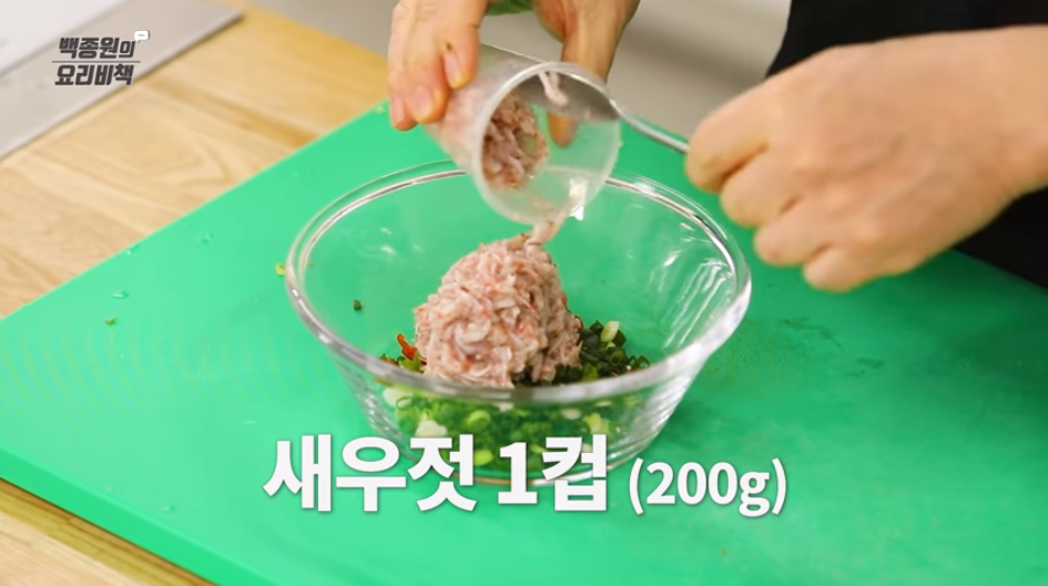 그릇에 새우젓, 설탕, 간마늘, 굵은고춧가루, 맛술, 통깨를 넣는다.