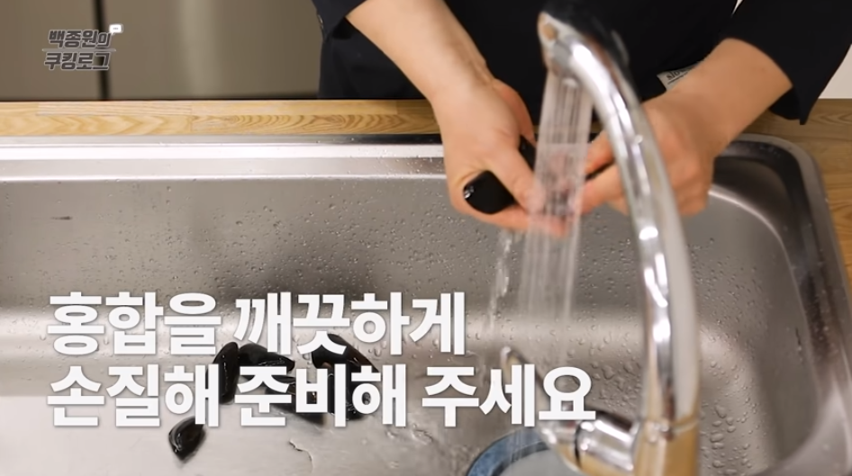 홍합은 족사를 제거하고 깨끗이 씻어 준비한다.