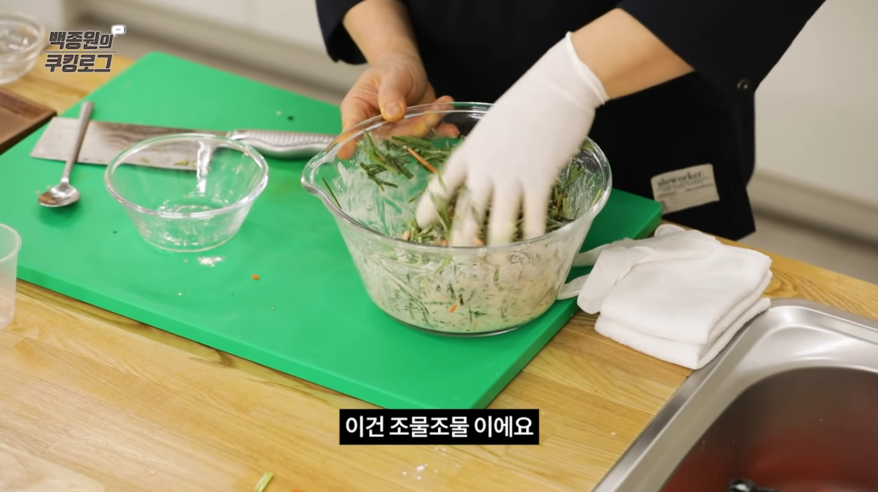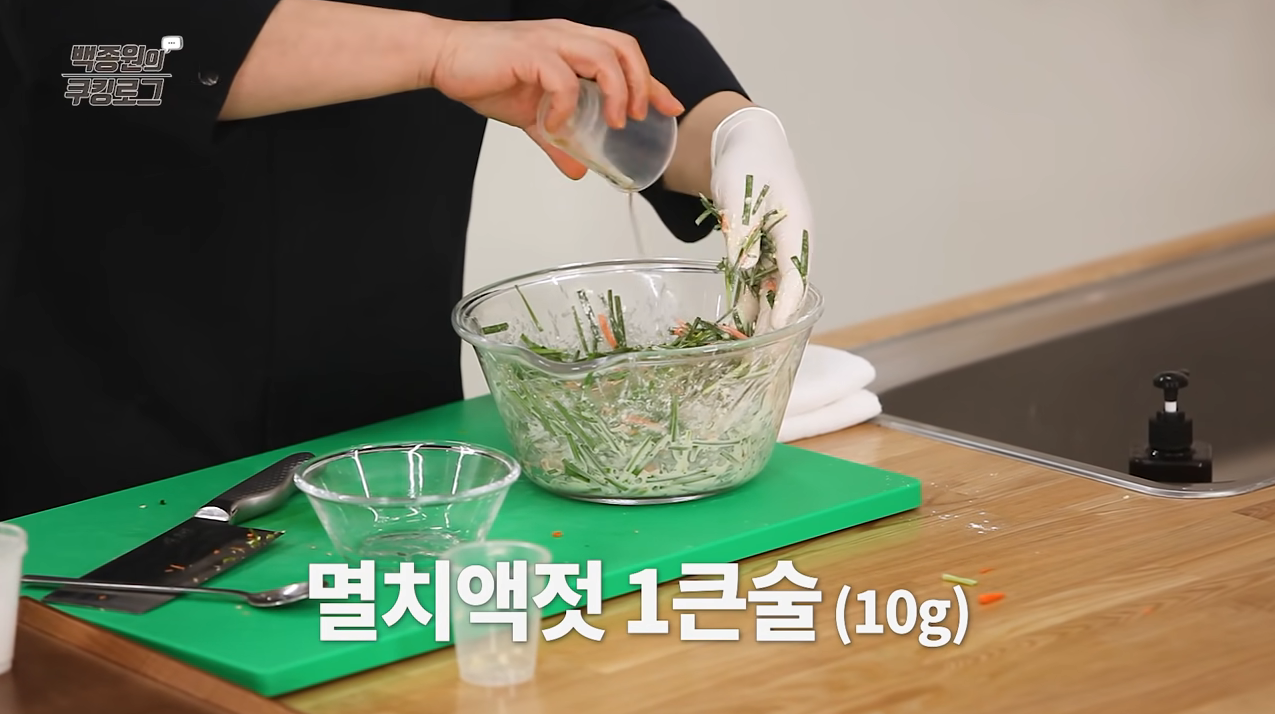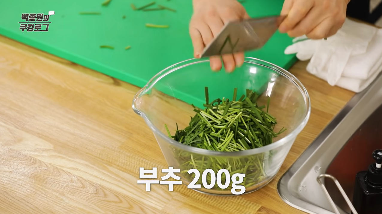전집에서 사드시는 것처럼 파~란 색이 나는 부추전을 알려드릴게요.