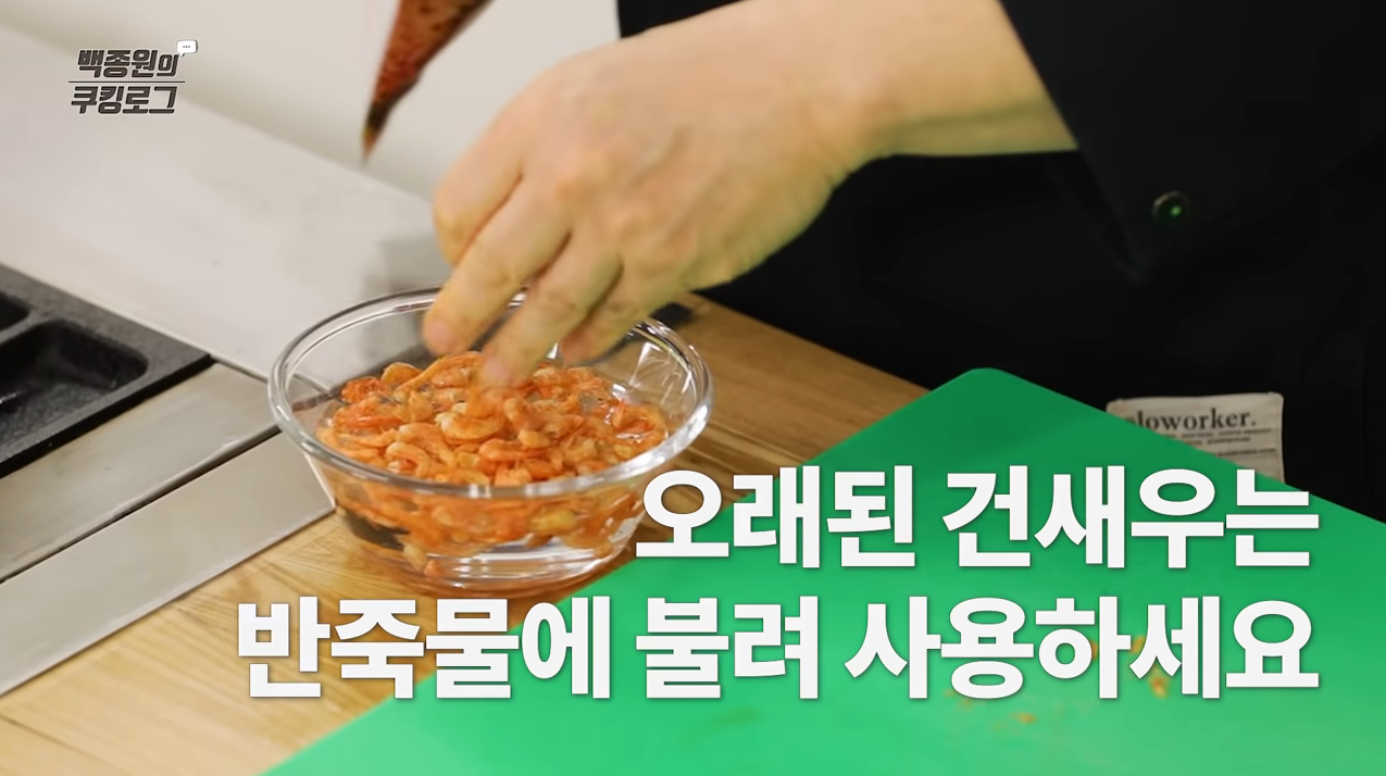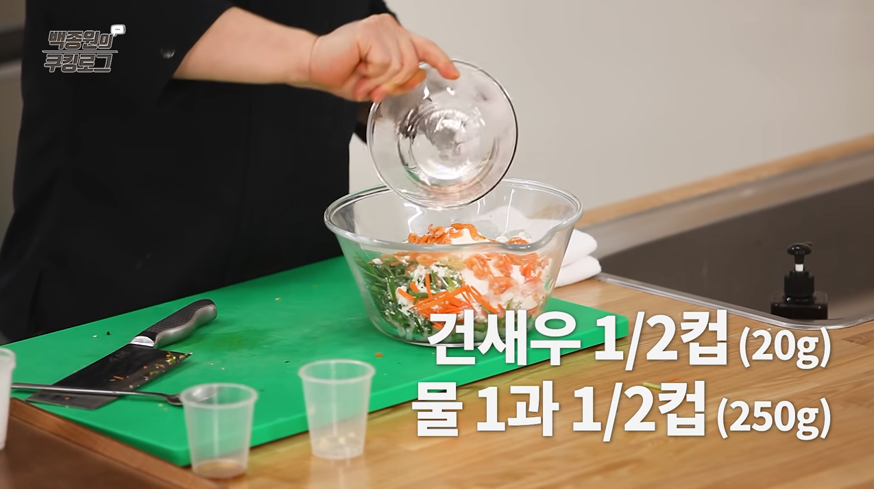 건새우는 반죽용 물에 불려 준비한다.