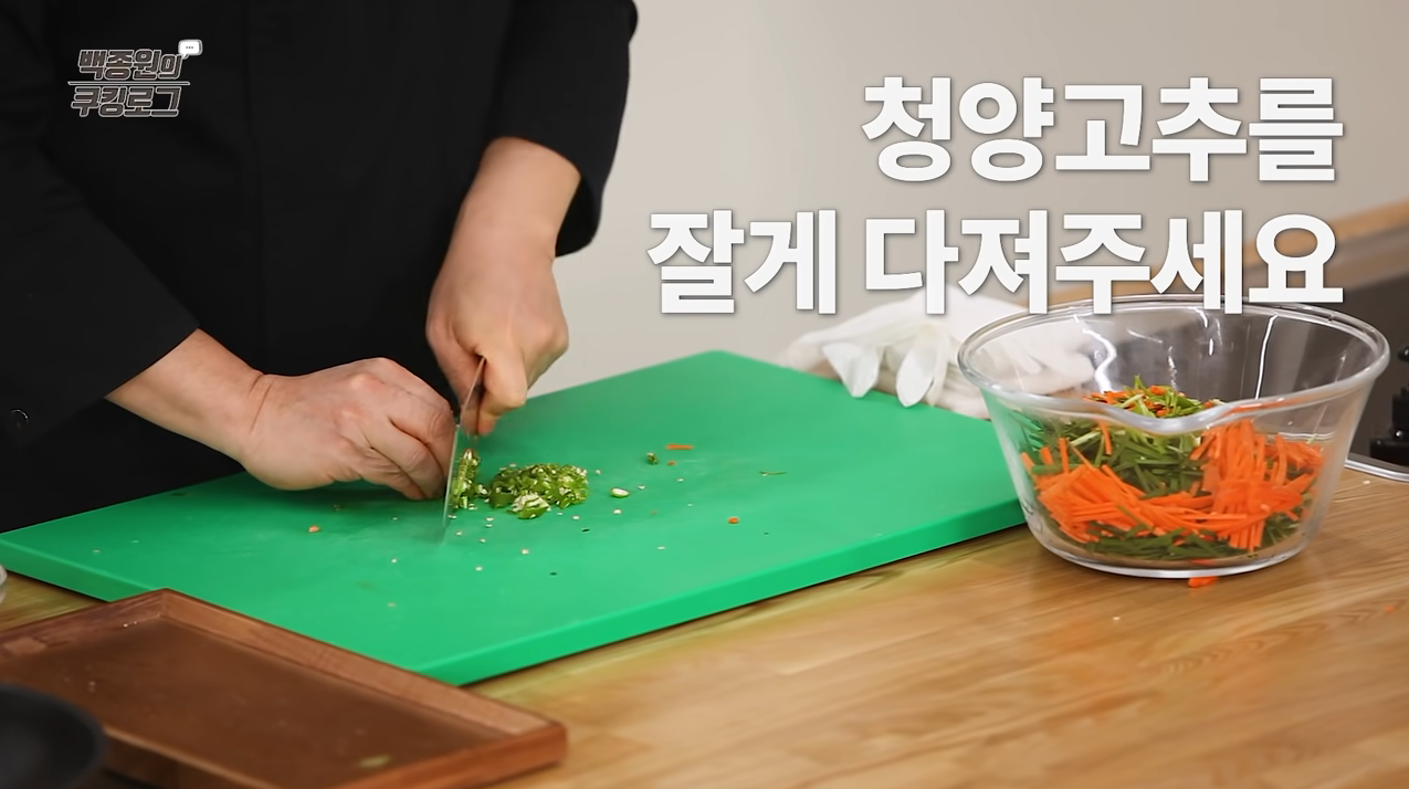 청양고추는 잘게 다지고 당근은 채 썬다.