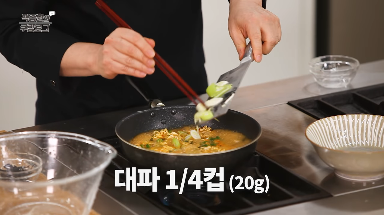 면이 알맞게 익으면 대파를 넣어 완성한다.